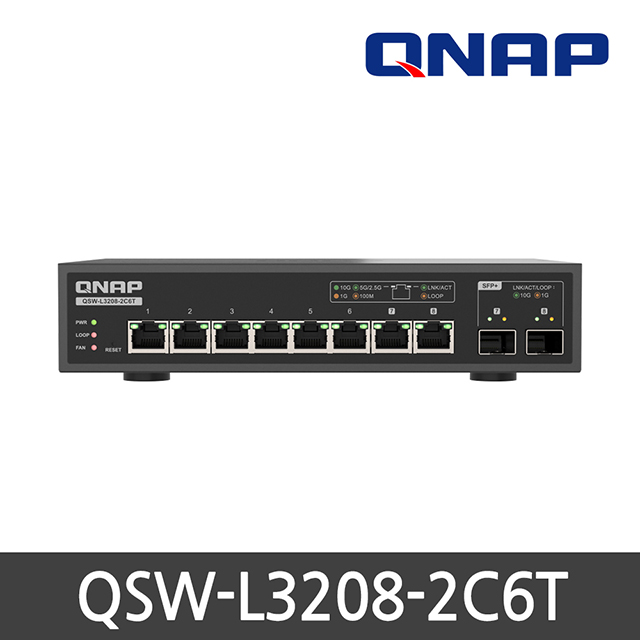QNAP (큐냅) QSW-L3208-2C6T 8포트 10G 관리형 스위치 , 6 x 10GbE BASE-T , 2 ports 10G SFP+/NBASE-T Combo