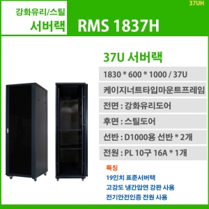 RMS 1837H-A (H1830 x W600 x D1000, 37U, F강화유리/R스틸 서버랙) 19인치표준서버랙, 37U, 1830x600x1000, 선반2개, 10구전원 1개