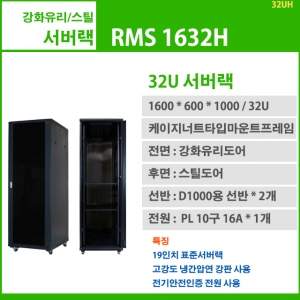 RMS 1632H-A (H1600 x W600 x D1000, 32U, F강화유리/R스틸 서버랙) 19인치표준서버랙, 32U, 1600x600x1000, 선반2개, 10구전원1개