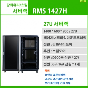 RMS 1427H-A (H1400 x W600 x D900, 27U, F강화유리/R스틸 서버랙) 19인치표준서버랙, 27U, 1400x600x900, 선반 2개,6구전원 1개