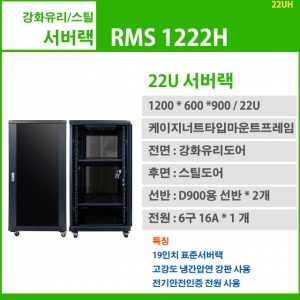 RMS 1222H-A (H1200 x W600 x D900, 22U, F강화유리/R스틸 서버랙) 19인치표준서버랙, 22U, 1200x600x900, 선반2개, 6구전원 1개