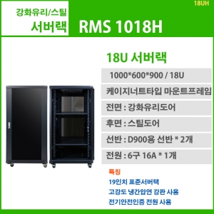 RMS 1018H-A (H1000 x W600 x D900, 18U, F강화유리/R스틸 서버랙) 19인치표준서버랙, 18U, 1000x600x900, 선반2개, 6구전원1개